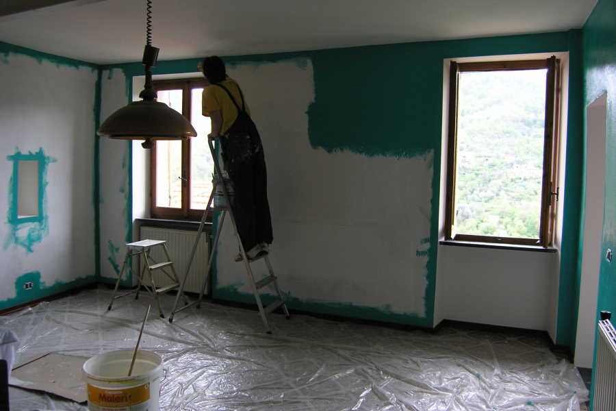 Das Schlafzimmer wird in türkisgrün gestrichen